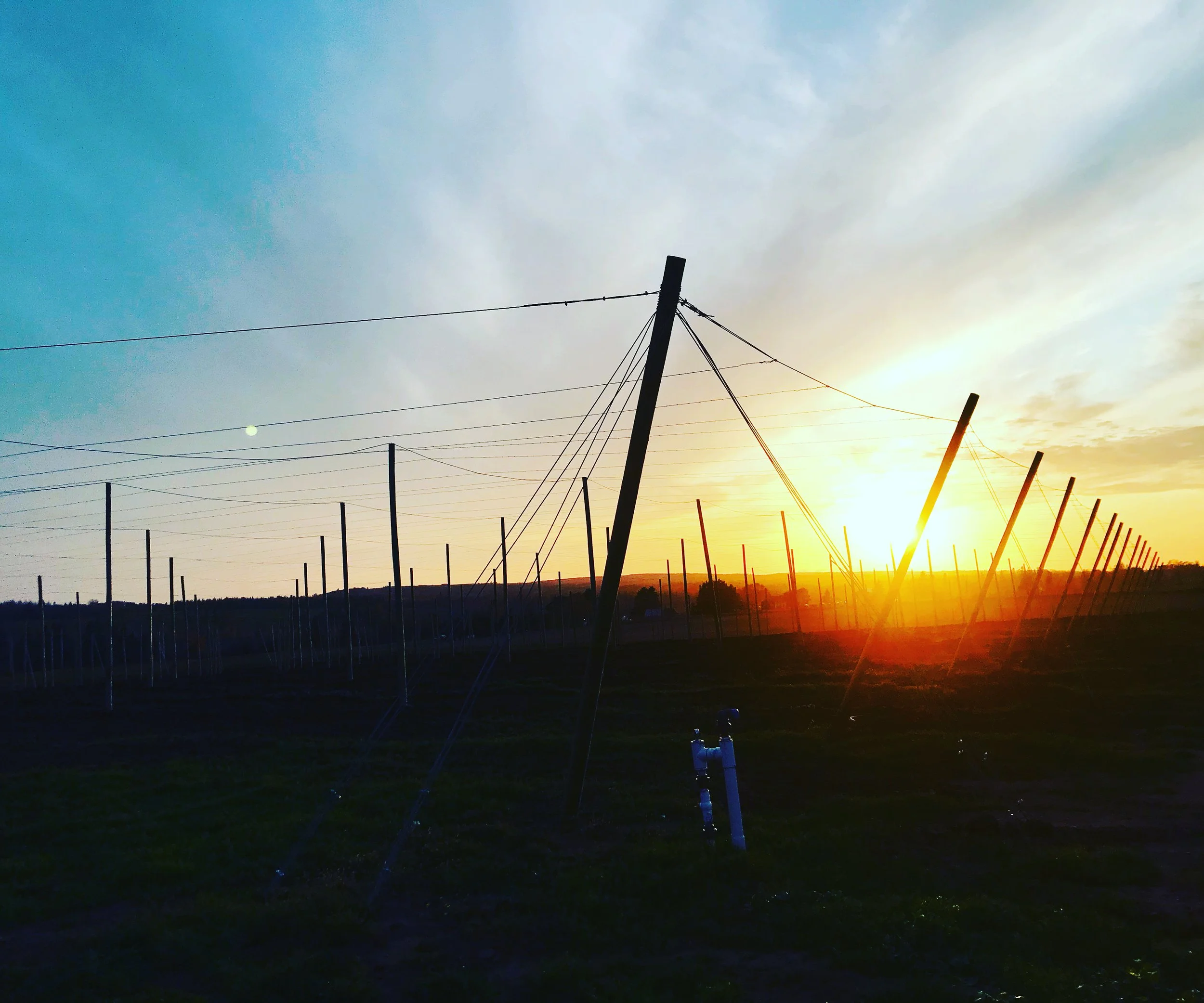 The Island company trellis system sits on 35 acres of field space yielding roughly 25 acres of fertigated hops under trellis. Our trellis system features imported German barbed wire that allows us to farm and harvest used the most efficient methods.