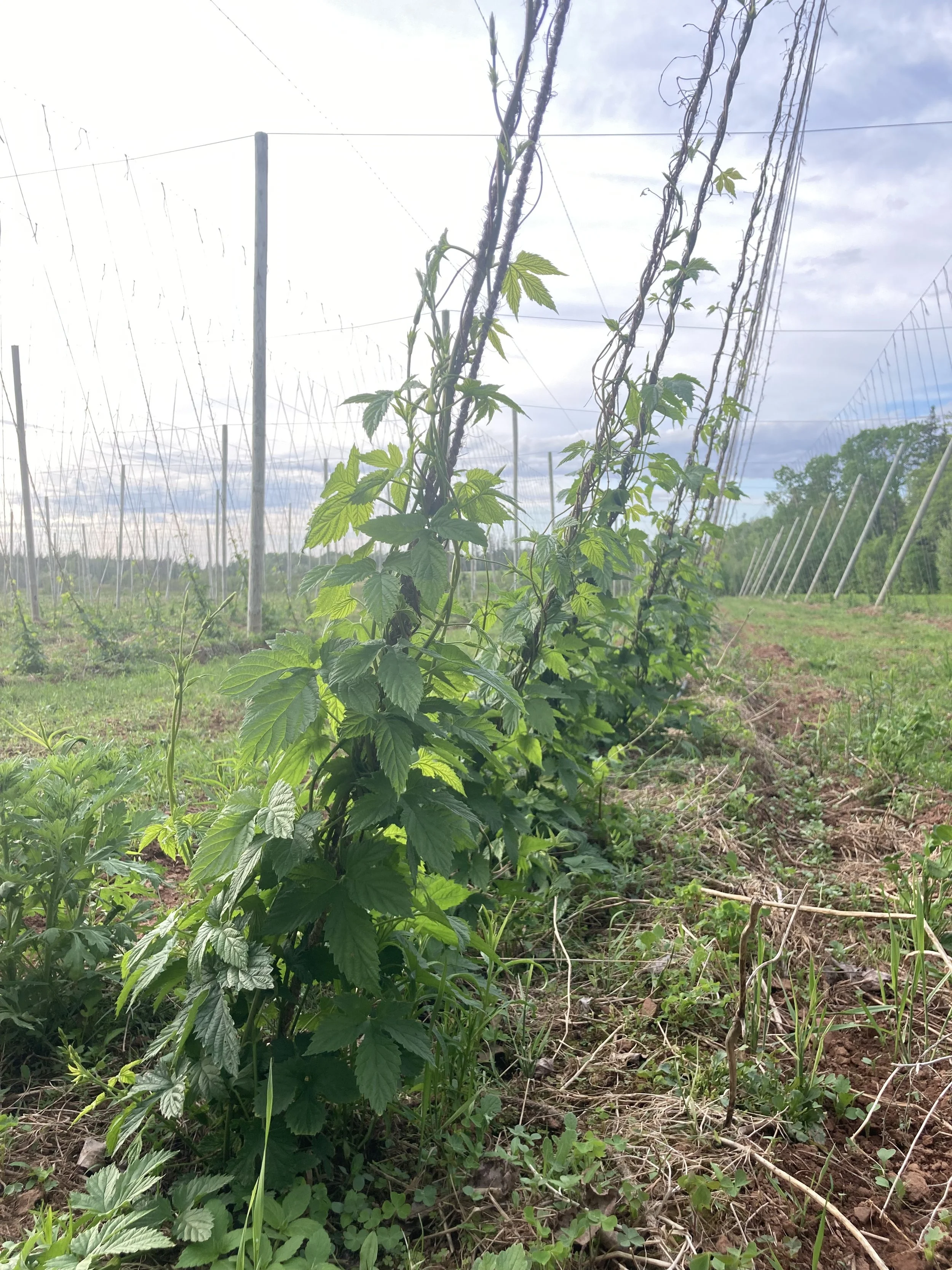 Our production is focused on Noble Hop (or Edelhopfen) production with makes up 19 acres of our total production. We also currently farm a 3 acre test field as well as 2 acres of dwarf hops, and over an acre of test hop production.